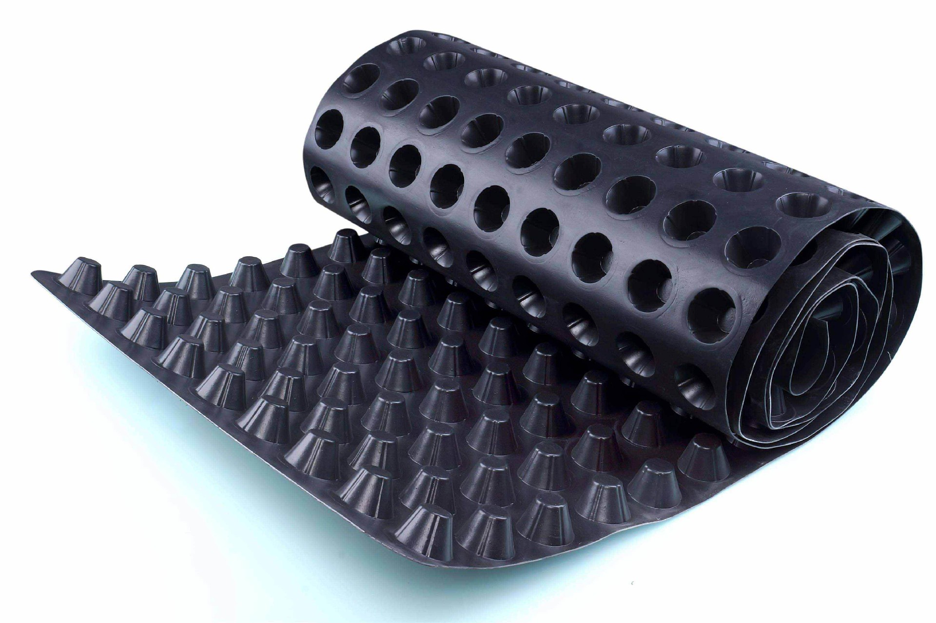 圓錐突臺(tái)的頂面膠接一層過(guò)濾土工布,以阻止泥土微粒通過(guò),從而避免排水通道阻塞使孔道排水順暢。 傳統(tǒng)的排水方式使用磚石瓦塊作為導(dǎo)濾層、使用較多的鵝卵石或碎石作為濾水層、將水排到指定地點(diǎn)。而用排水板取代鵝卵石濾水層來(lái)排水則省時(shí)、省力又節(jié)能、節(jié)省投資、還能建筑物的荷載。良好的排水系統(tǒng)對(duì)土建的施工周期及構(gòu)筑物的正常使用和壽具有重要的作用。排水板與多孔滲水管組成一個(gè)有效的疏排水系統(tǒng),圓柱形的多空排水板與土工布也組成一個(gè)排水系統(tǒng),從而形成一個(gè)具有滲水、貯水和排水功能的系統(tǒng)。