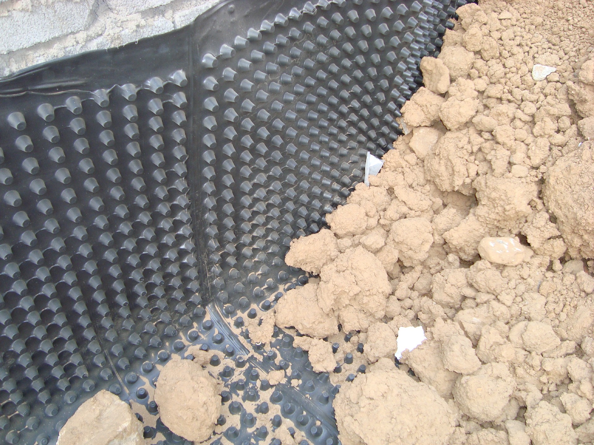 防排水保護(hù)板可以有效地保護(hù)構(gòu)筑物和防水層,并且抵抗土壤中的各類(lèi)酸堿和植物的根刺。在地下室外墻回填土?xí)r,它可以保護(hù)建筑物和防水層免遭破壞。