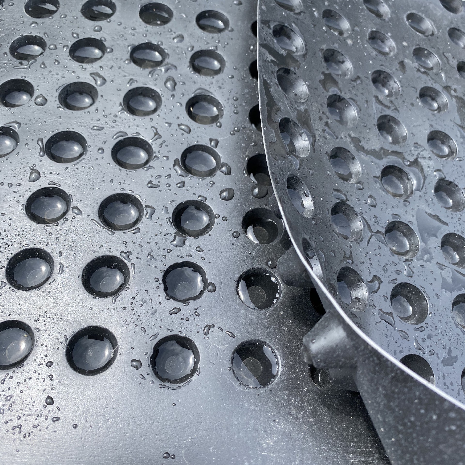 排水均勻,排水、儲備綠化用水、水分儲量大,調(diào)節(jié)水分供給,保溫保濕,節(jié)水節(jié)能,土壤透氣性好,有利于植物對氧氣和水分的吸收,承載力大,荷載輕,施工簡單輕便,耐久環(huán)保。 排水板,較厚覆土車庫頂板排水板的選擇地庫頂板排水板的選擇與頂板構(gòu)造和種植類別選擇有關(guān)系,承重好,覆土1.5米以上的頂板應(yīng)選擇承載力大的排水板,覆土1.5米以下就選擇承載力小的排水板,覆土0.5米以下應(yīng)選擇蓄水功能的排水板。 排水指標(biāo)(L/S)水頭損失5CM3.6水頭損失10CM5.0達到強降水