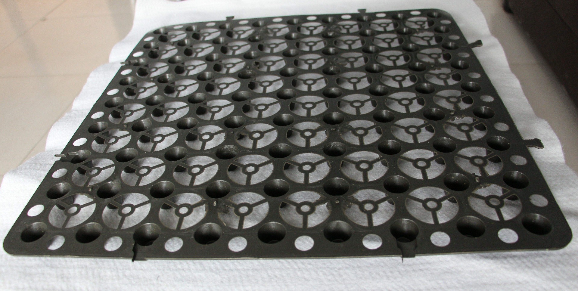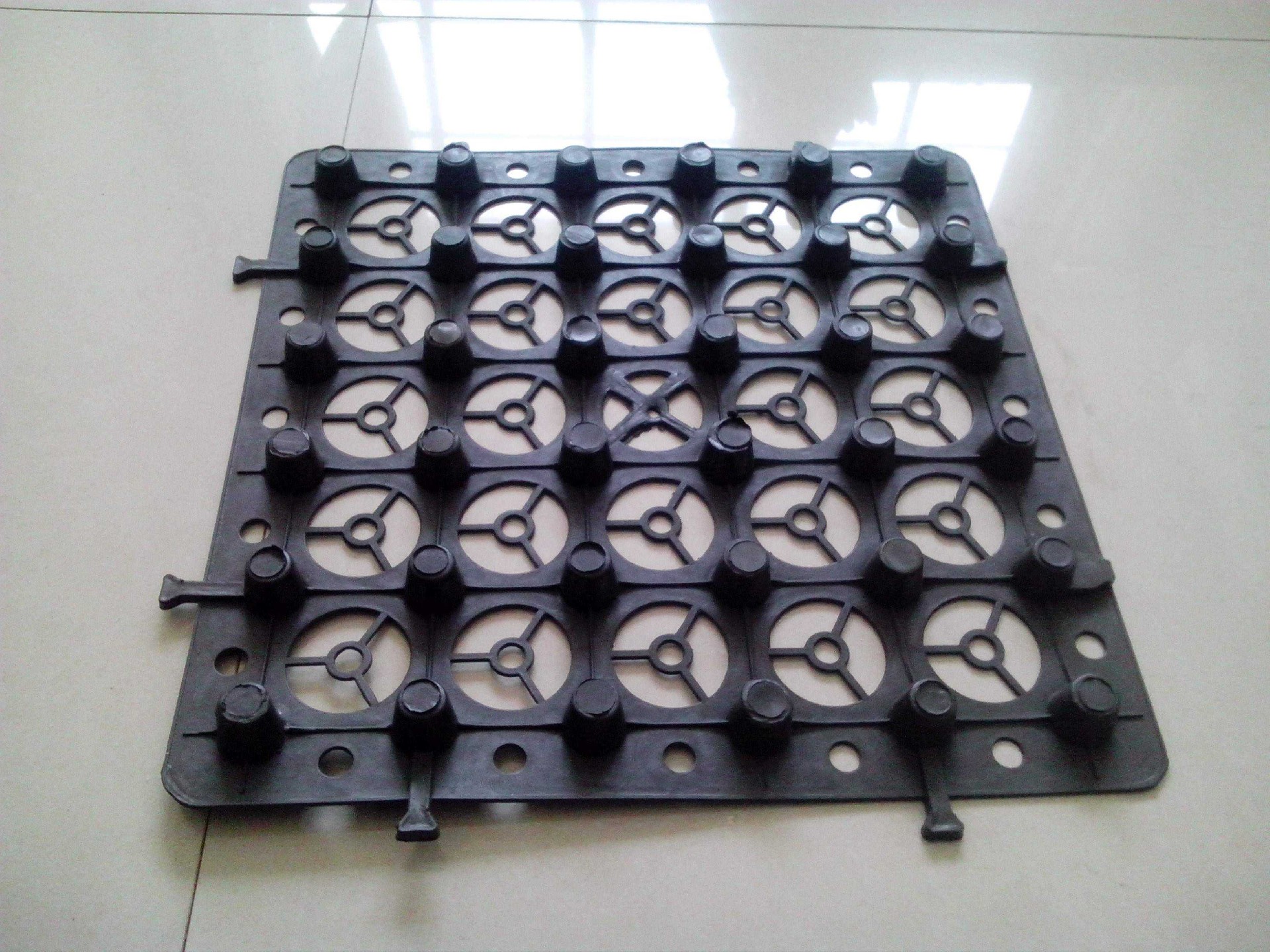 2.將排水板杯狀口朝上鋪裝,齒孔相扣;