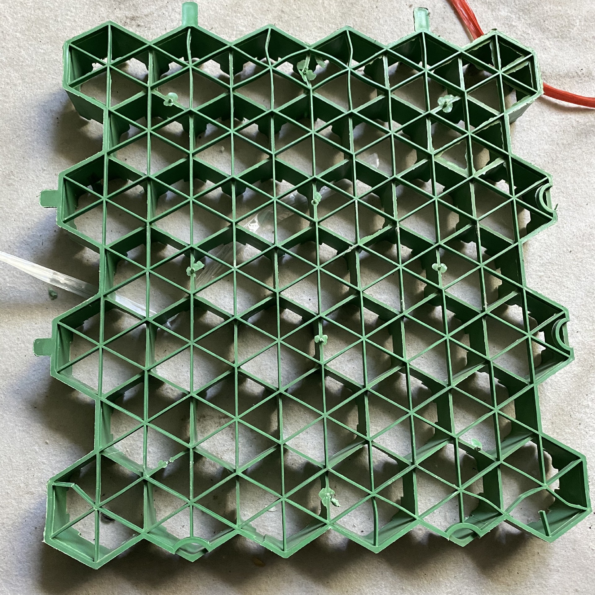 1、綠化:草格提供超過(guò)95%的植草面積,的綠化,可以吸音、吸塵,了環(huán)境的品質(zhì)與品味。(參考:混凝土植草磚只有30%空隙)